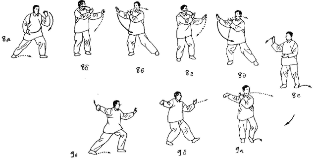 Выполняйте приемы плавно и грациозно, так, как будто вы читаете стихи. При проведении различных приемов обратите особое внимание на поддержание устойчивости и равновесия, которые в полной мере достижимы лишь в том случае, когда есть представление о фундаментальных принципах, согласно которым движение начинается от пояса, и проводится четкая грань между «пустым» и «полным» . Помните, что тайцзи — это внутреннее искусство, и чисто механическое выполнение комплекса в лучшем случае превратит вашу тренировку в заурядную физзарядку.